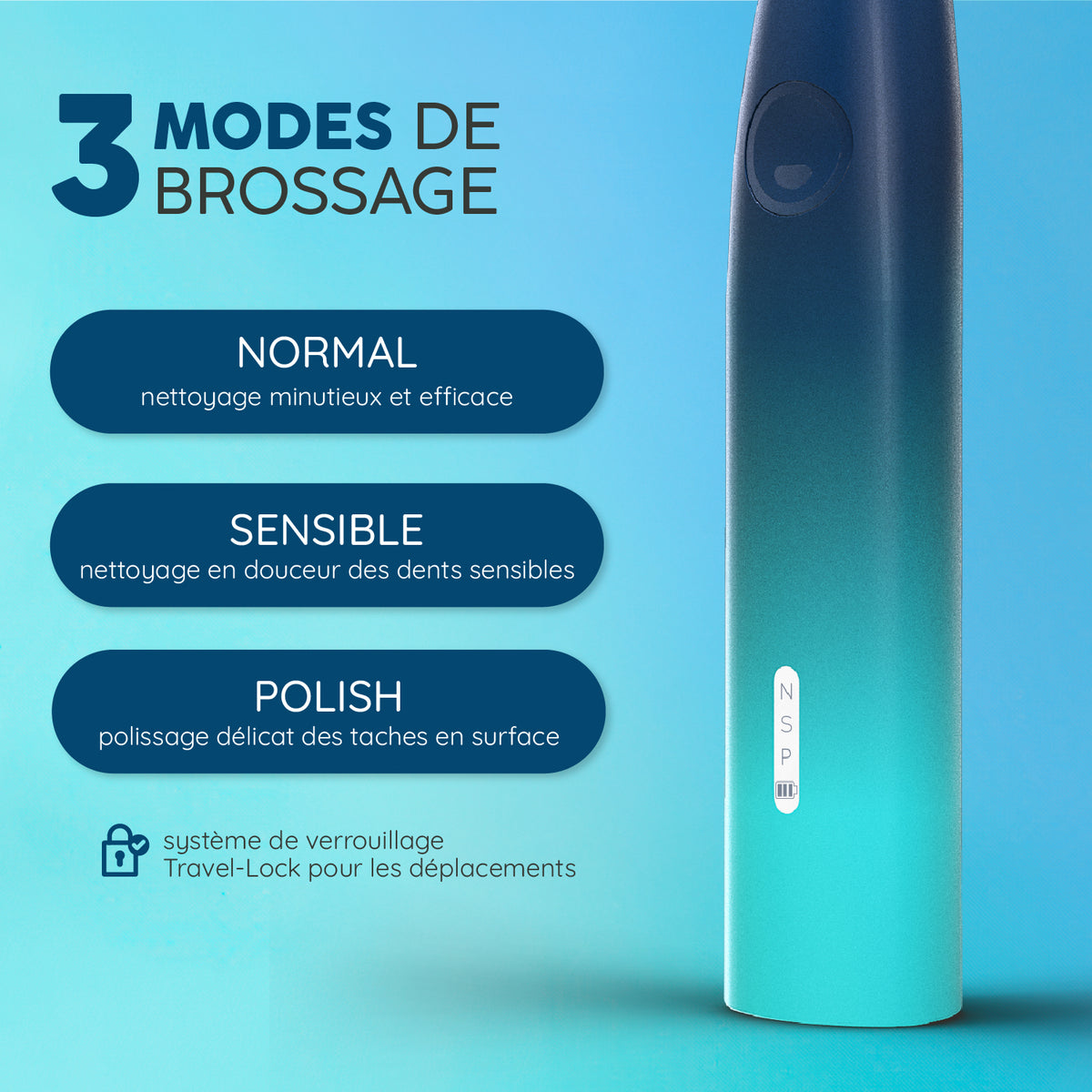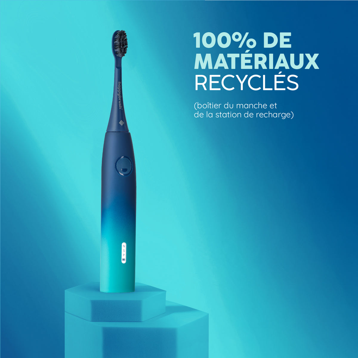 Notre brosse à dents assure un nettoyage en profondeur et en douceur grâce à 40.000 vibrations et 3 modes de nettoyage. Elle élimine jusqu'à 7x plus de plaque* qu'une brosse à dents manuelle. La batterie dure jusqu'à 6 semaines - de quoi en oublier son câble - et le manche est fabriqué à partir de 100% de matériaux recyclés.